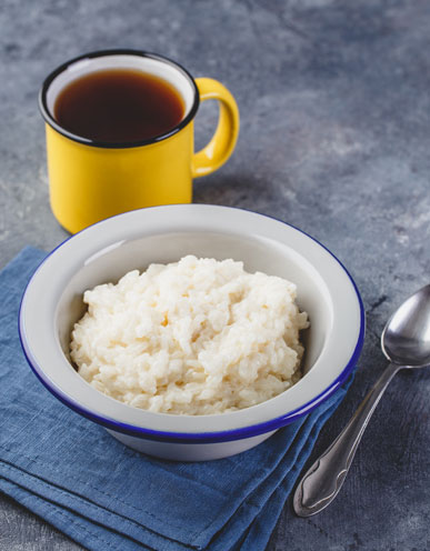 1. Faites bouillir le lait avec le sucre en poudre et le sucre vanillé. Dès l’ébullition, jetez le riz en pluie, baissez le feu puis laissez cuire doucement 20 min environ.